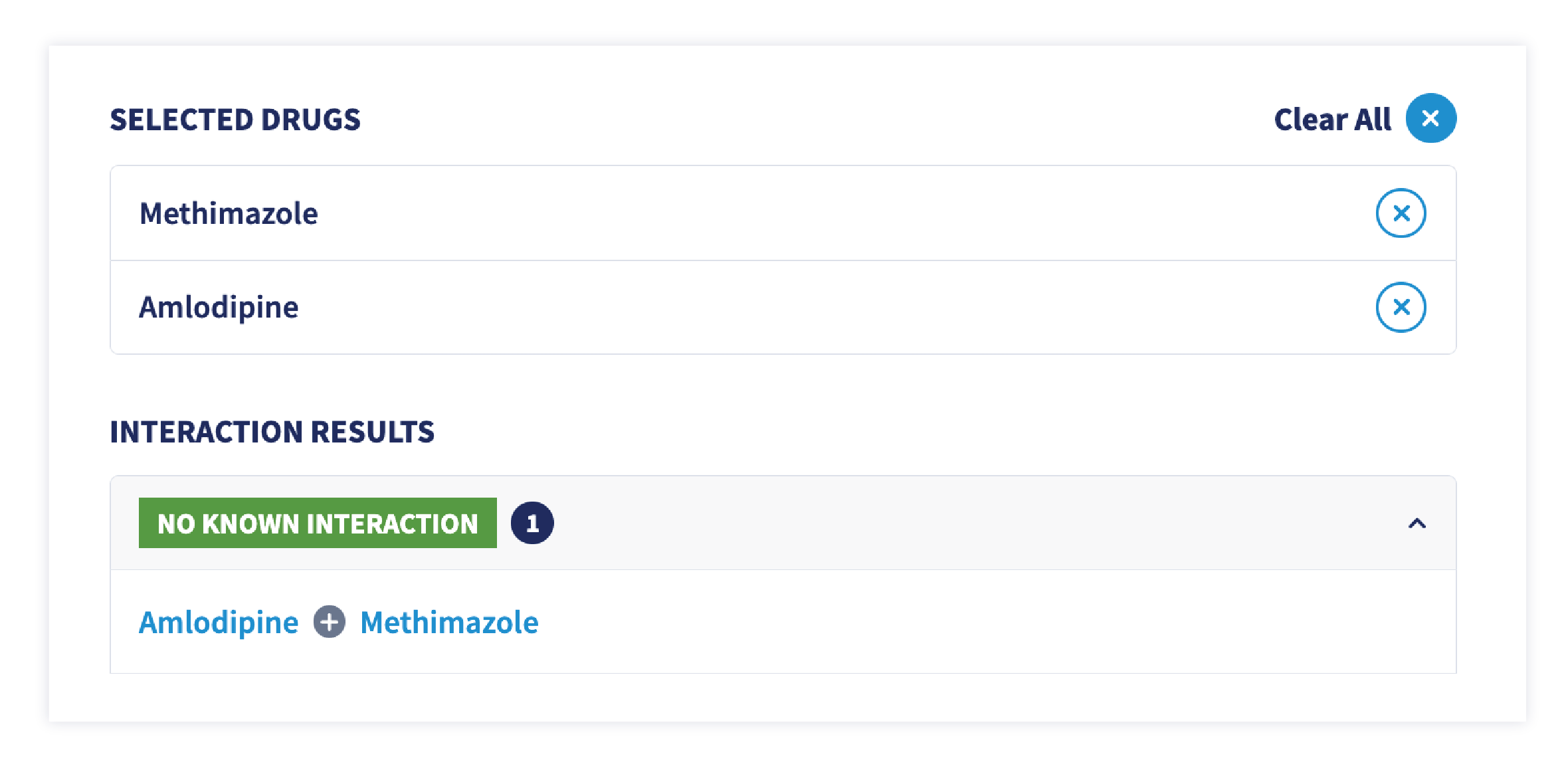 You haven’t prescribed amlodipine for quite some time. While you’re pretty sure you can use it alongside methimazole without risking a drug interaction, you quickly confirm that’s the case using the Plumb’s drug interaction checker.