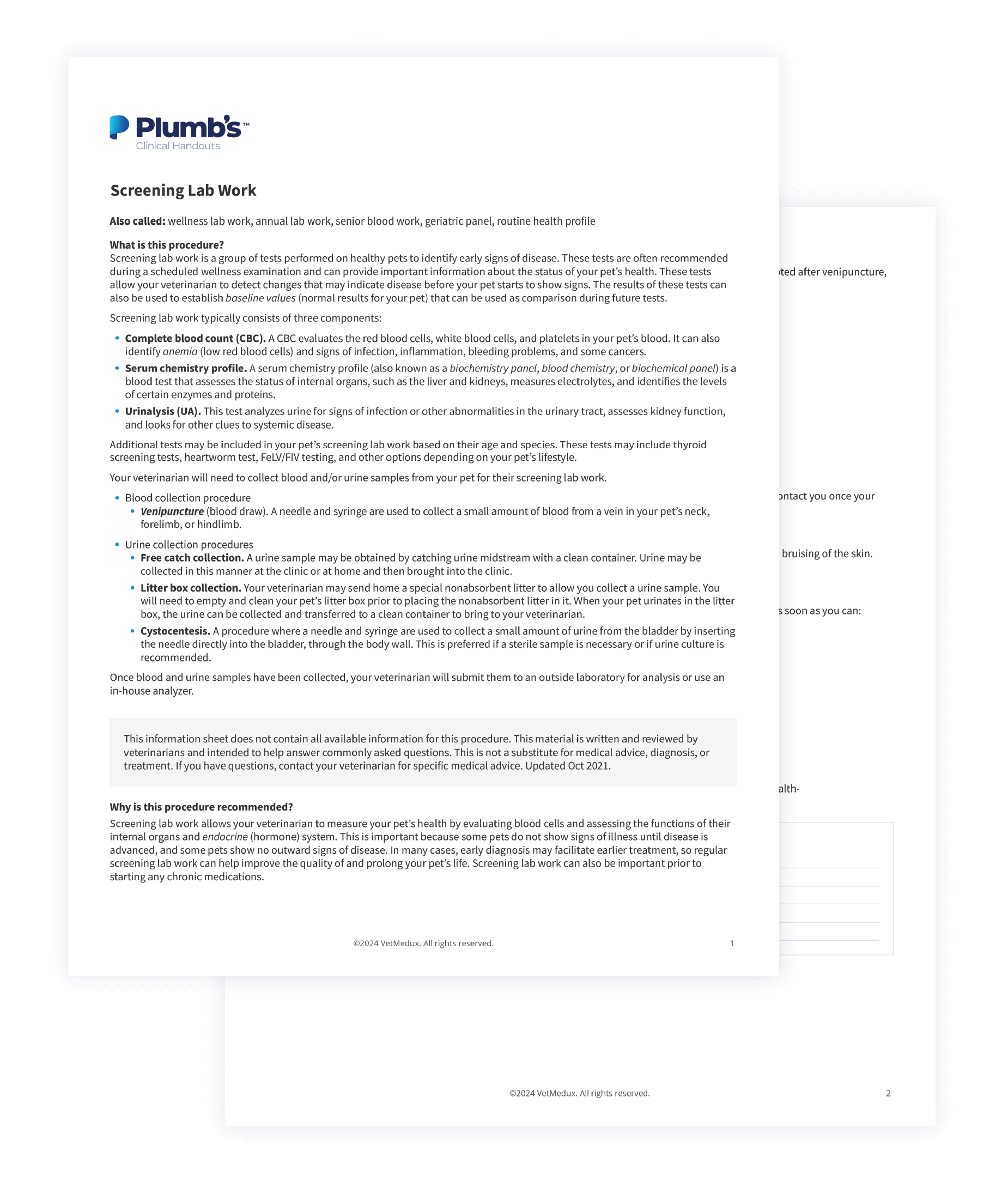 Clinical handouts in Standards™ cover essential information about clinical conditions, common procedures, laboratory findings, and preventive care topics, and drug handouts provide pet owners with everything they need to know about the drugs we prescribe.