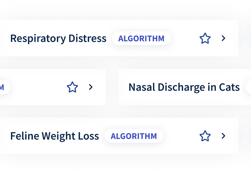 Search the library of 100+ diagnostic and treatment flowcharts by topic or keyword to get step-by-step case support on everything from anemia and red eye to chronic diarrhea in cats.