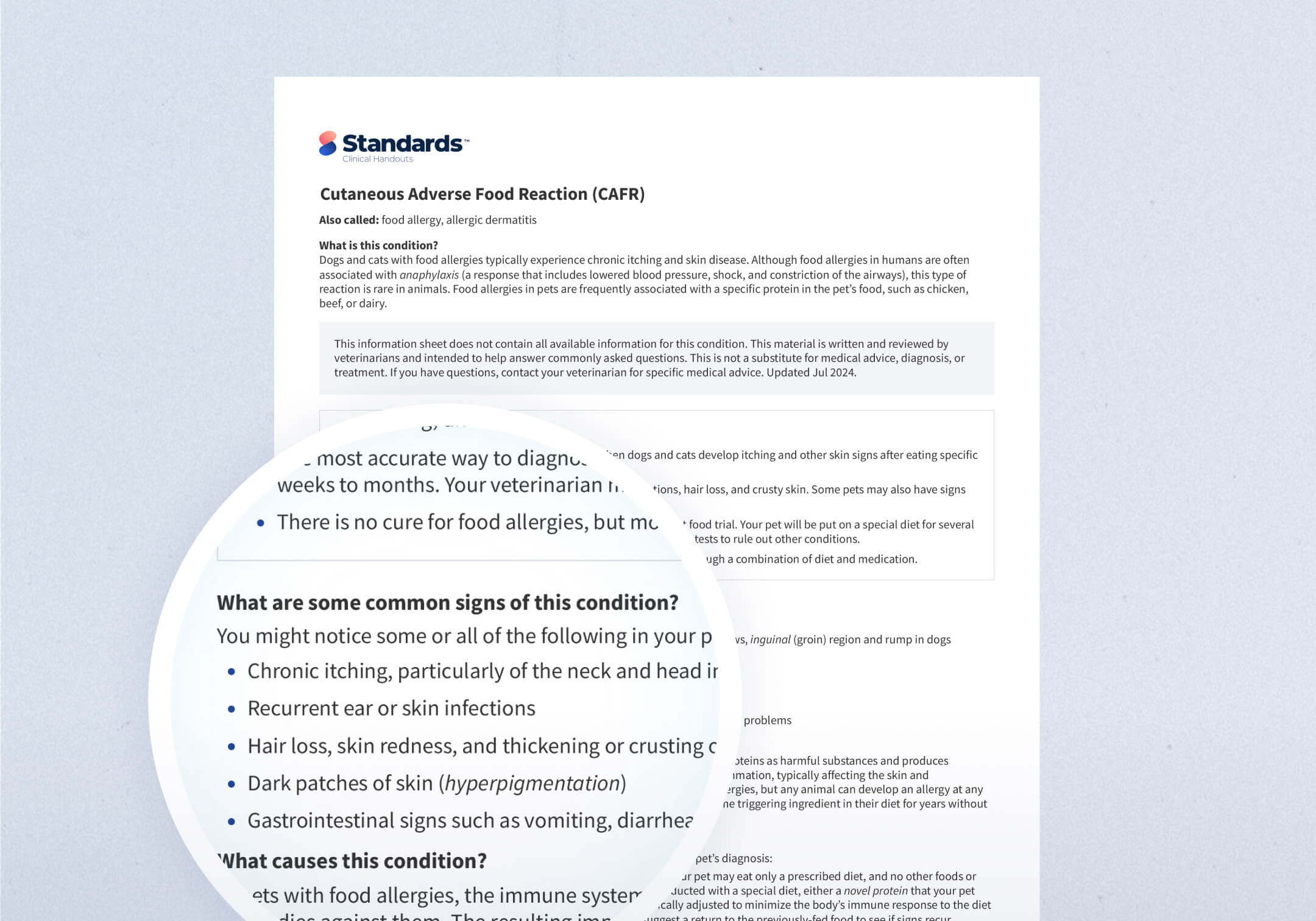 Help pet owners process and understand crucial details about their pet’s treatment, prognosis, and next steps for care with printable, easy-to-understand clinical handouts.