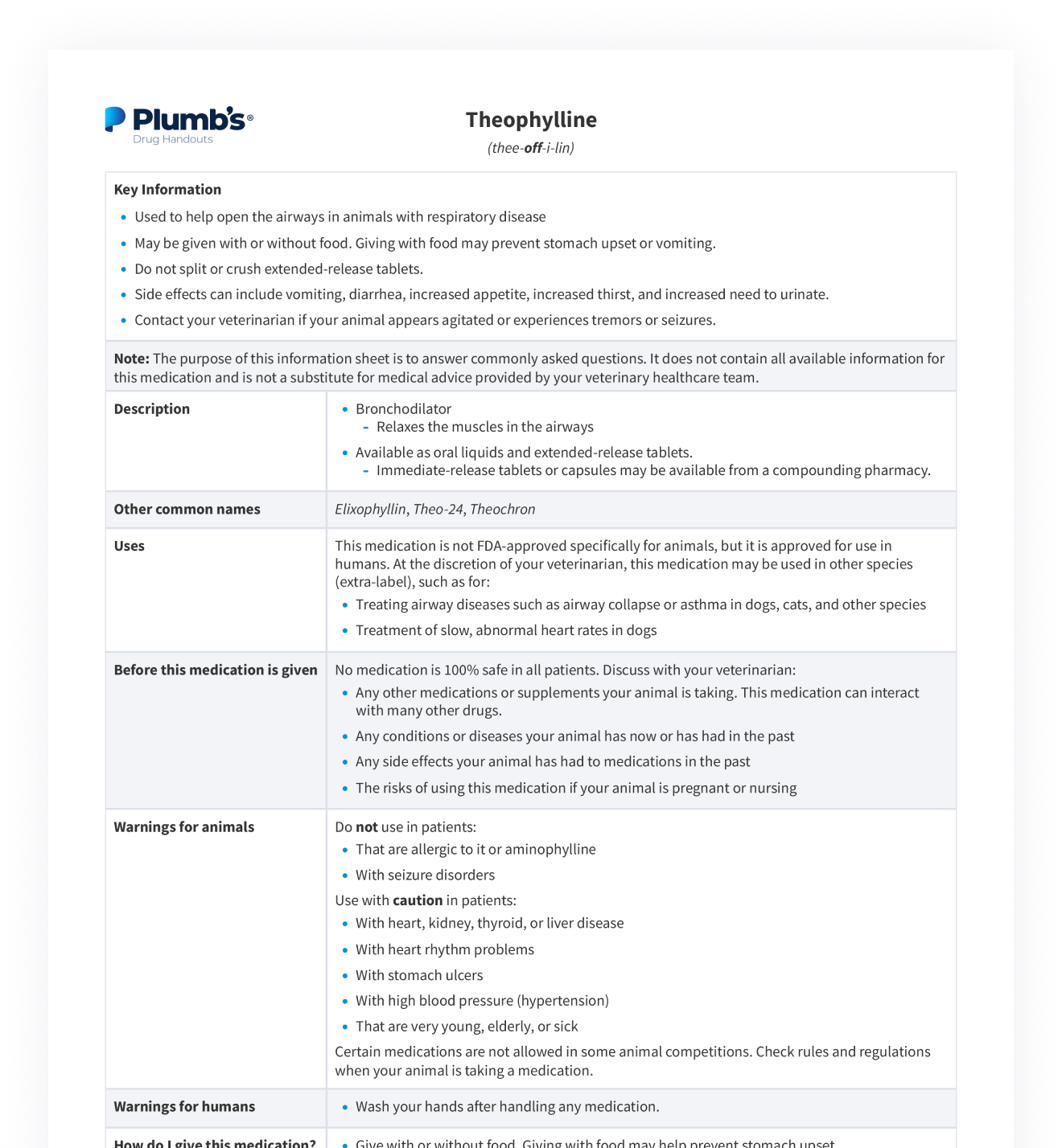 Reduce stress and frustration and help pet owners feel confident about the medications you prescribe with printable, easy-to-understand drug information sheets on more than 550 drugs used in animals.