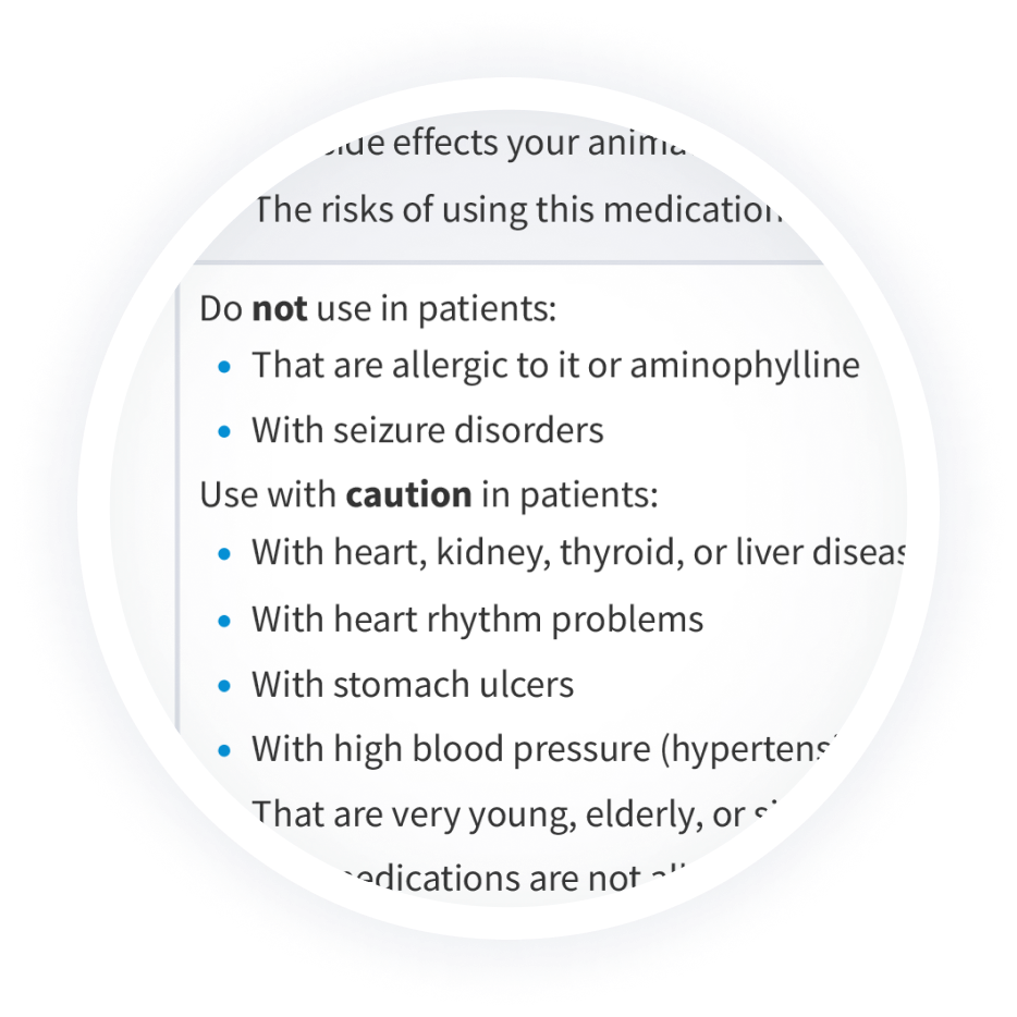 Each Plumb’s drug monograph covers current doses, indications, adverse effects, and more, and is continually updated by our expert team of veterinarians and pharmacists so you can confirm your treatment plans with confidence.